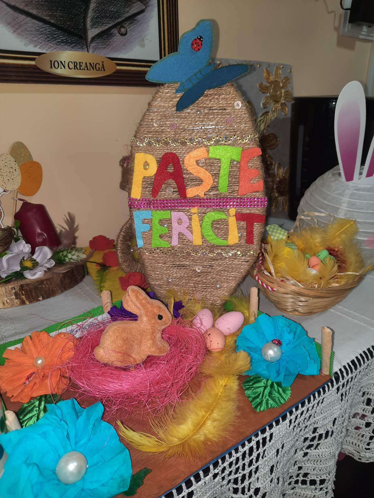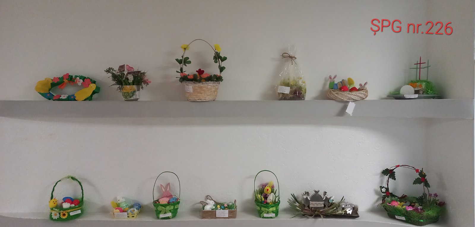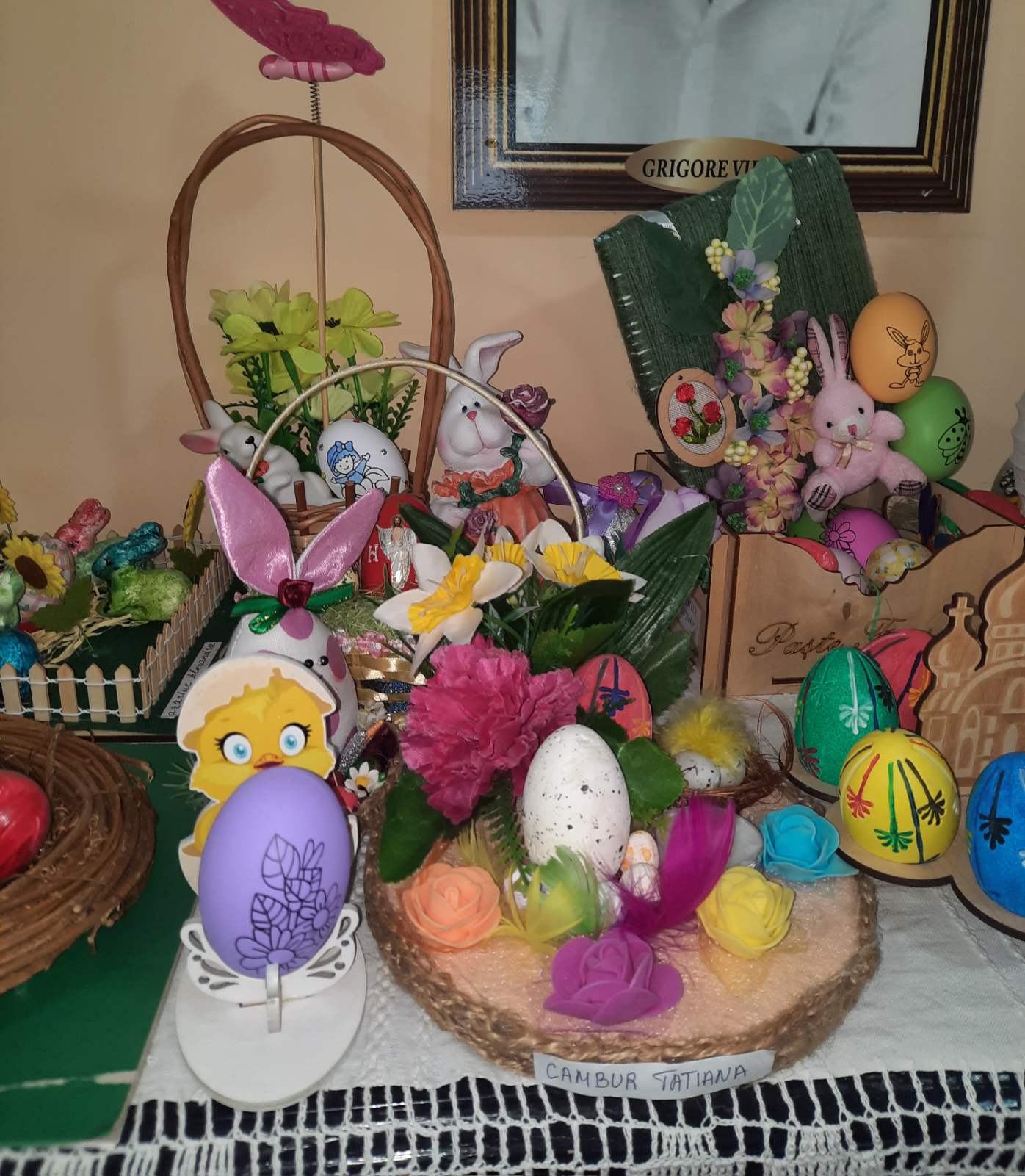 Simboluri, tradiții, obiceiuri și ritualuri de Paști sunt laitmotivele compozițiilor, care meșterite în diferite tehnici și din variate materiale sunt un adevărat festin vizual.