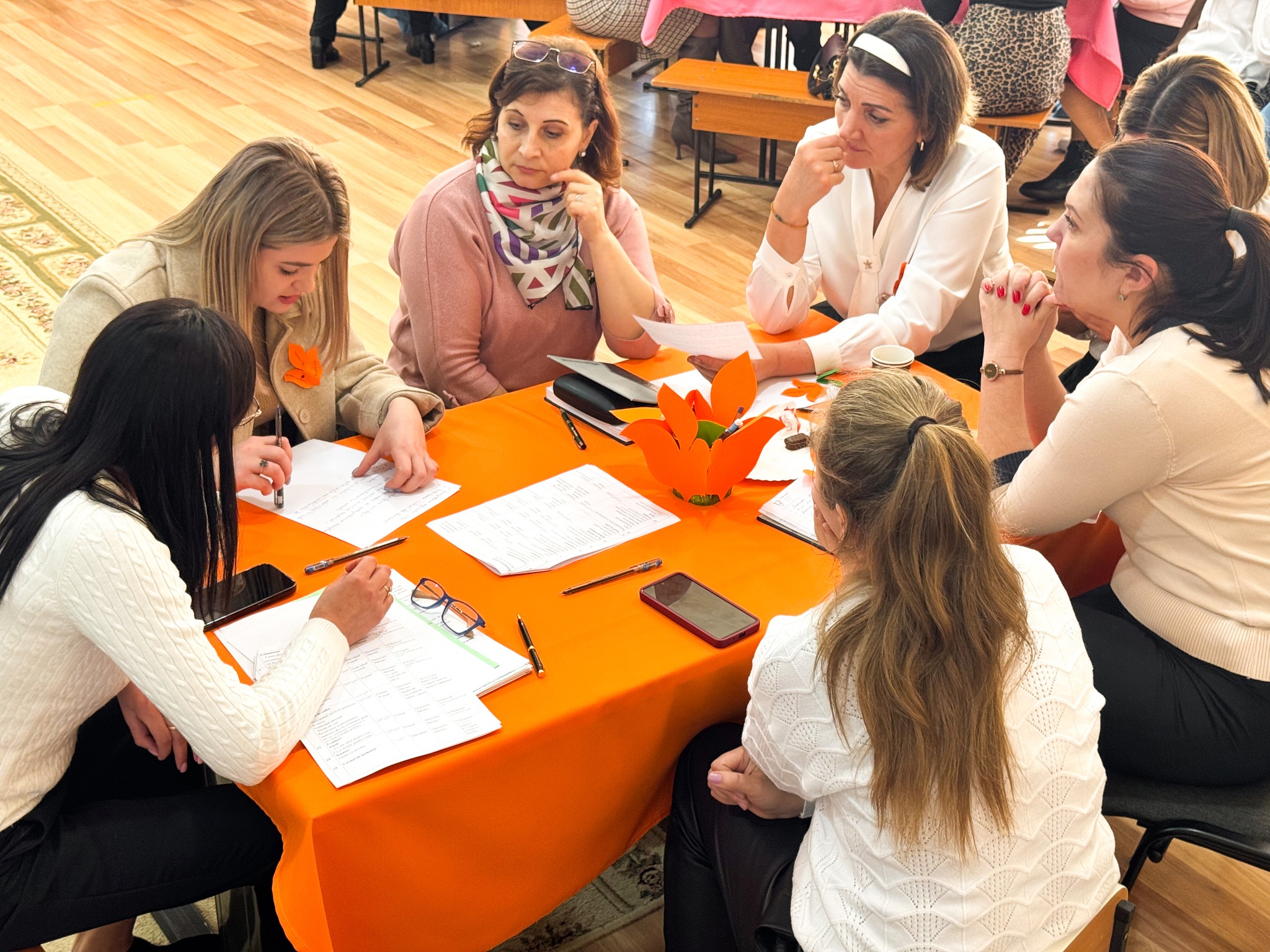 A doua parte a trainingu-lui a grupat directorii și părinții în echipe care au lucrat în cadrul a 5 ateliere practice asupra analizării studiilor de caz.